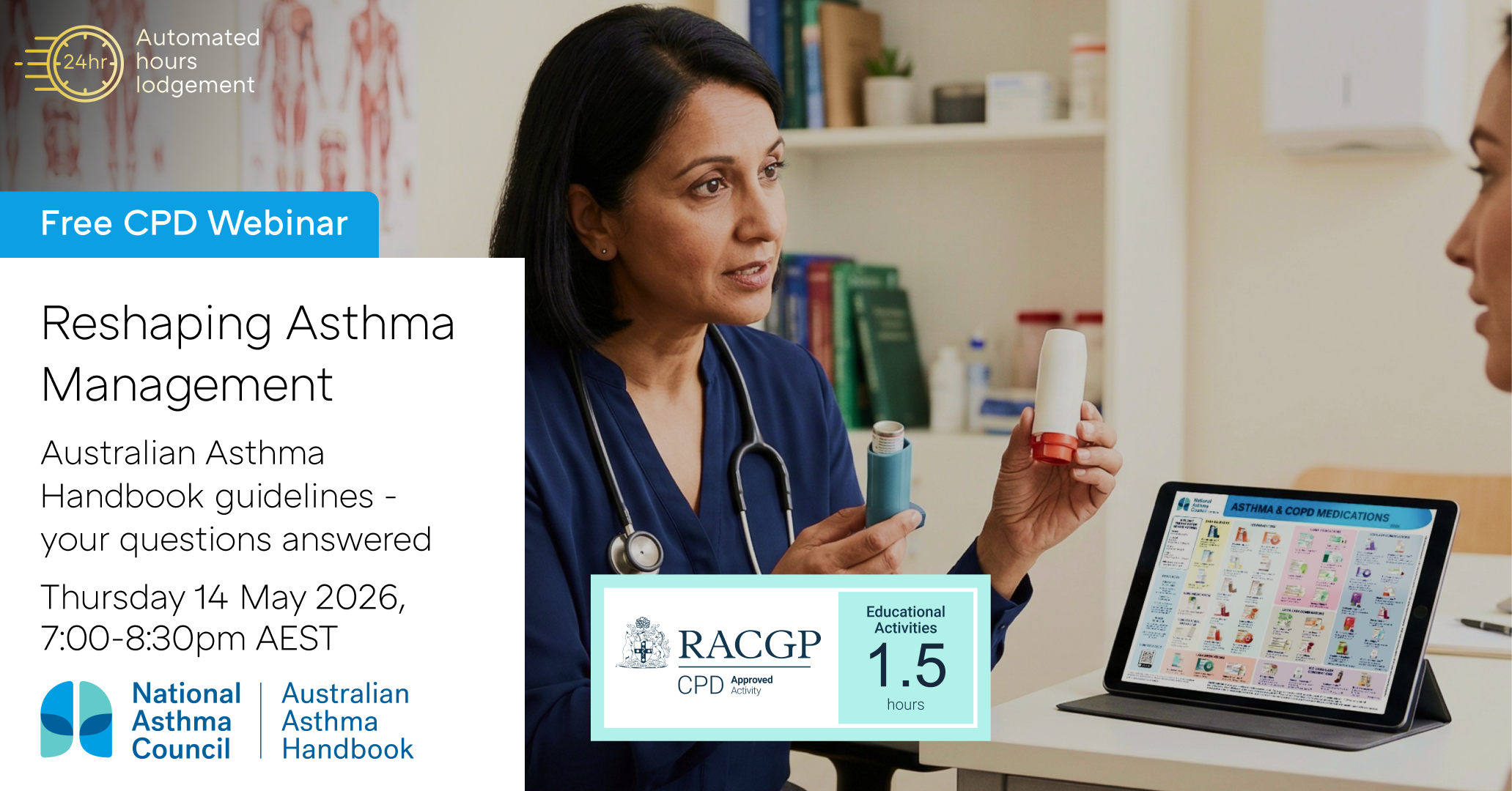 Join us for this live CPD webinar on Thursday 14 May at 7pm, and learn how to apply the National Asthma Council (NAC) Australian Asthma Handbook updates in everyday clinical practice.